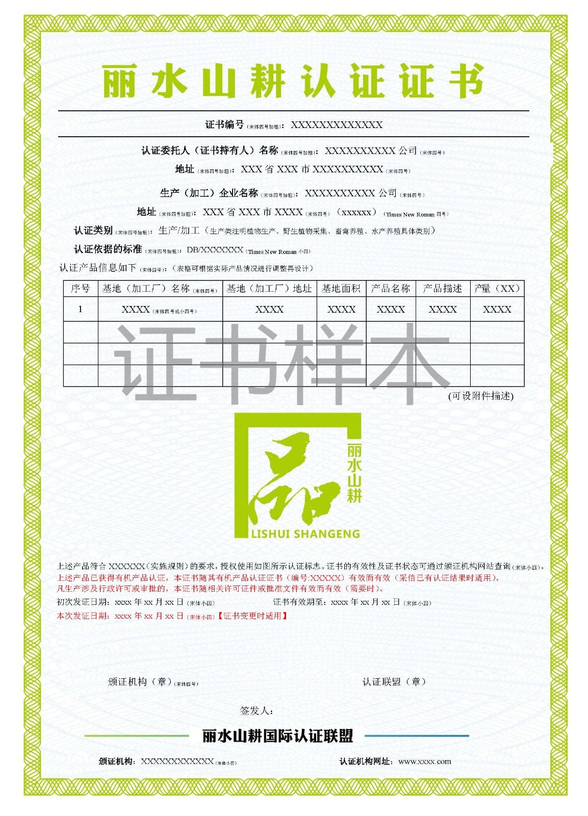 麗水山耕認(rèn)證:植物生產(chǎn) | T/LSSGB 001-2017 | 麗水山耕團(tuán)體標(biāo)準(zhǔn) 麗水山耕:食用種植產(chǎn)品 | ICALS/C01-2018 | “麗水山耕”認(rèn)證實(shí)施細(xì)則 食用種植產(chǎn)品 |